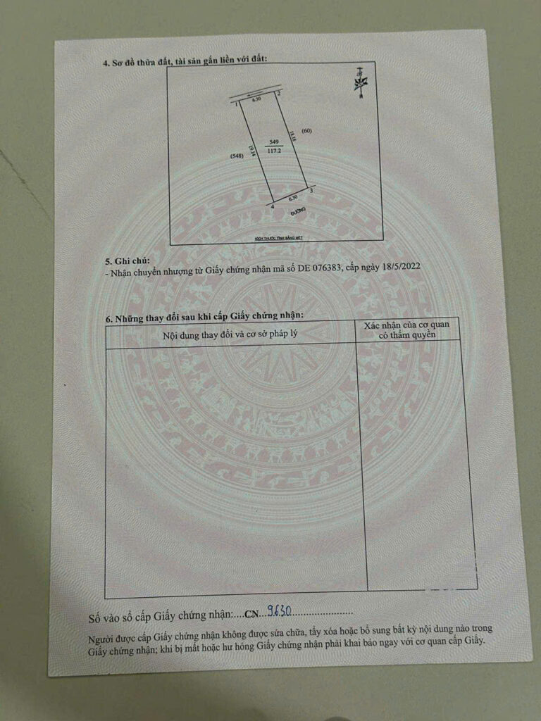 📐 Diện tích: 117,2m² – đất vuông vắn, bằng phẳng, sẵn sàng xây dựng.